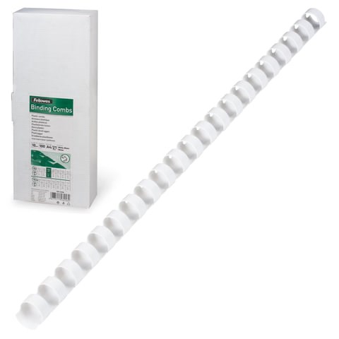Пружины пластиковые для переплета, КОМПЛЕКТ 100 шт., 10 мм (для сшивания 41-55 л.), белые, FELLOWES, FS-53458