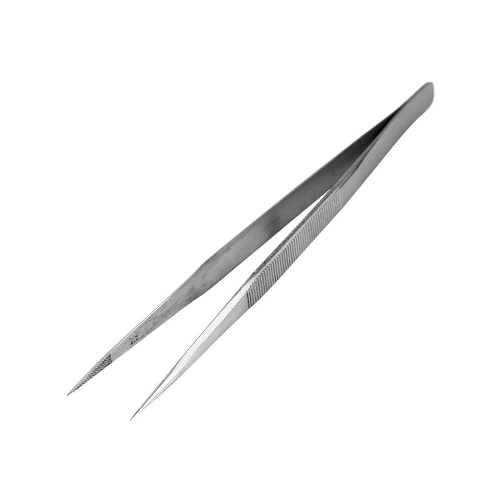 Стальной пинцет REXANT используется для проведения манипуляций с различными небольшими предметами и деталями, такими как крепеж, шестеренки, марки, драгоценные камни и пр. Широко применяется в паяльных и ручных работах, сборочном производстве, филателии, ювелирном деле, робототехнике, промывке золота и т. д. Инструмент изготовлен из долговечной нержавеющей стали AISI 304, устойчивой к поражению коррозией. Рифление на внешней стороне корпуса исключает скольжение пальцев во время работы. Прямые рифленые концы позволяют надежно удерживать детали. Оптимальная длина и небольшой вес пинцета делают работу наиболее комфортной. Для удобства хранения и транспортировки предусмотрен пластиковый колпачок, который защищает концы пинцета.