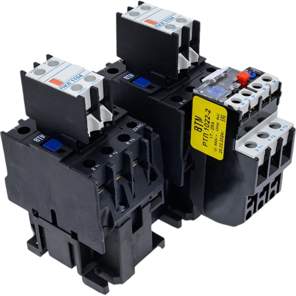 Пускатель ВТМ (S) ПМ 12-025601-25А-24АС-(2з+4р)-РТЛ1022-2(17,0-25,0А)-УХЛ4-В 0047259 ВТМ00047259 - устройство дистанционного управления, предназначенное для частых включений и отключений электрических цепей. Предназначен для работы на переменном токе при напряжении сети до 660 Вольт и частоте 50-60 Гц. Применение: управление электродвигателями, электрооборудованием кранов, в стационарных установках микропроцессорной техники. С помощью реверсивного пускателя можно изменять направление вращения электродвигателя (реверсивный пускатель ПМ12 состоит из двух нереверсивных, которые объединены в один). Внимание! Фотография товара является условной, при выборе ориентируйтесь на технические характеристики.
