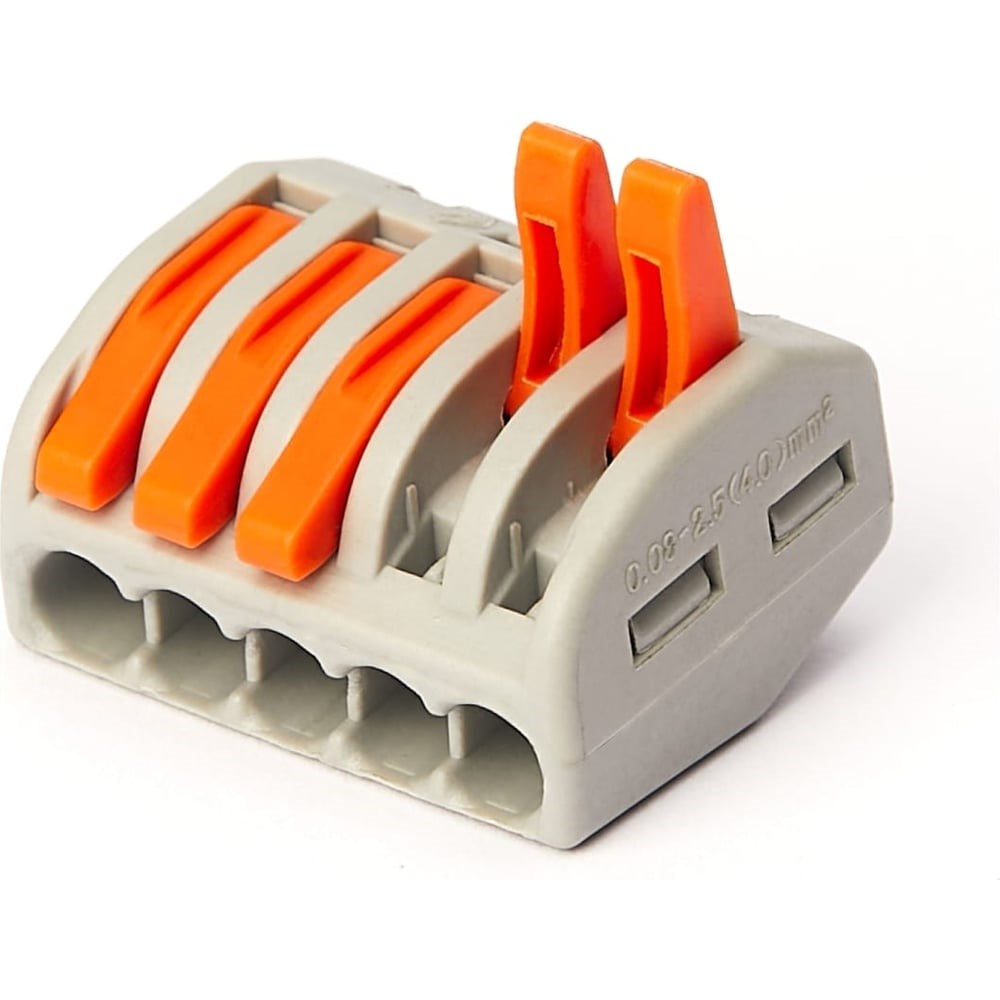 Пятипроводная клемма 20 шт/уп Gigant GCT-222-415-20 предназначена для соединения и ответвления многопроволочных проводников сечением от 0,08 до 4 мм2. Корпус выполнен из пластика, стойкого к воздействию пламени и ультрафиолета. Механизм клемм гарантирует прочную фиксацию даже при механическом воздействии на проводники, а контактные пластины из луженой меди надежно защищают его от окисления.