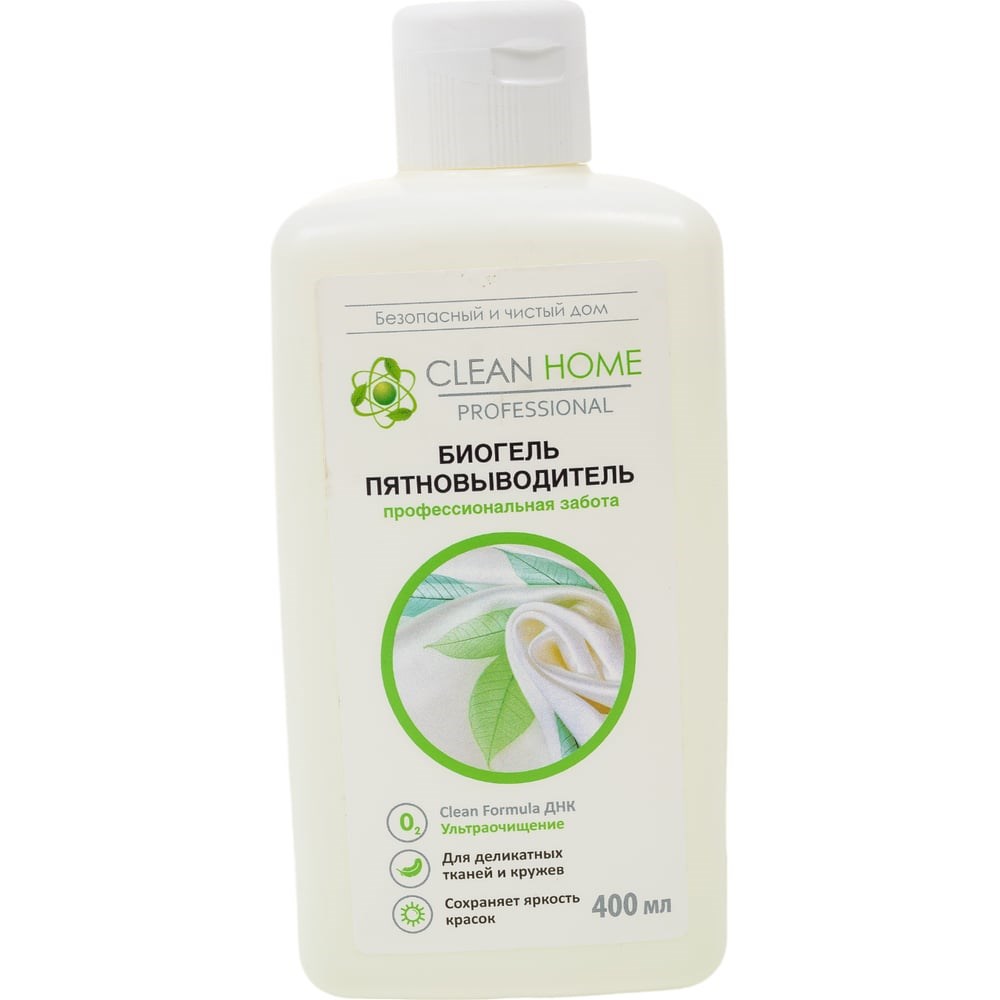 Пятновыводитель CLEAN HOME активный кислород, 400 мл 497 удаляет органические белковые загрязнения: пятна кофе, чая, травы, сока, вина, крови, пота, защищает цвет и структуру волокон, устраняет неприятные запахи. Действует в присутствии любого моющего средства при температуре 30- 90 С. Средство содержит биоразлагаемые компоненты, поэтому безопасно для окружающей среды. Способ применения: Перед применением содержимое флакона встряхнуть. Для удаления пятен нанести биогель на пятно. Протереть и через 10-15 мин выстирать изделие в присутствии средства для стирки. Для лучшего результата дополнительно добавить 15-30 мл биогеля при стирке. В случае сомнений в устойчивости окраски изделий попробовать на незаметной части.