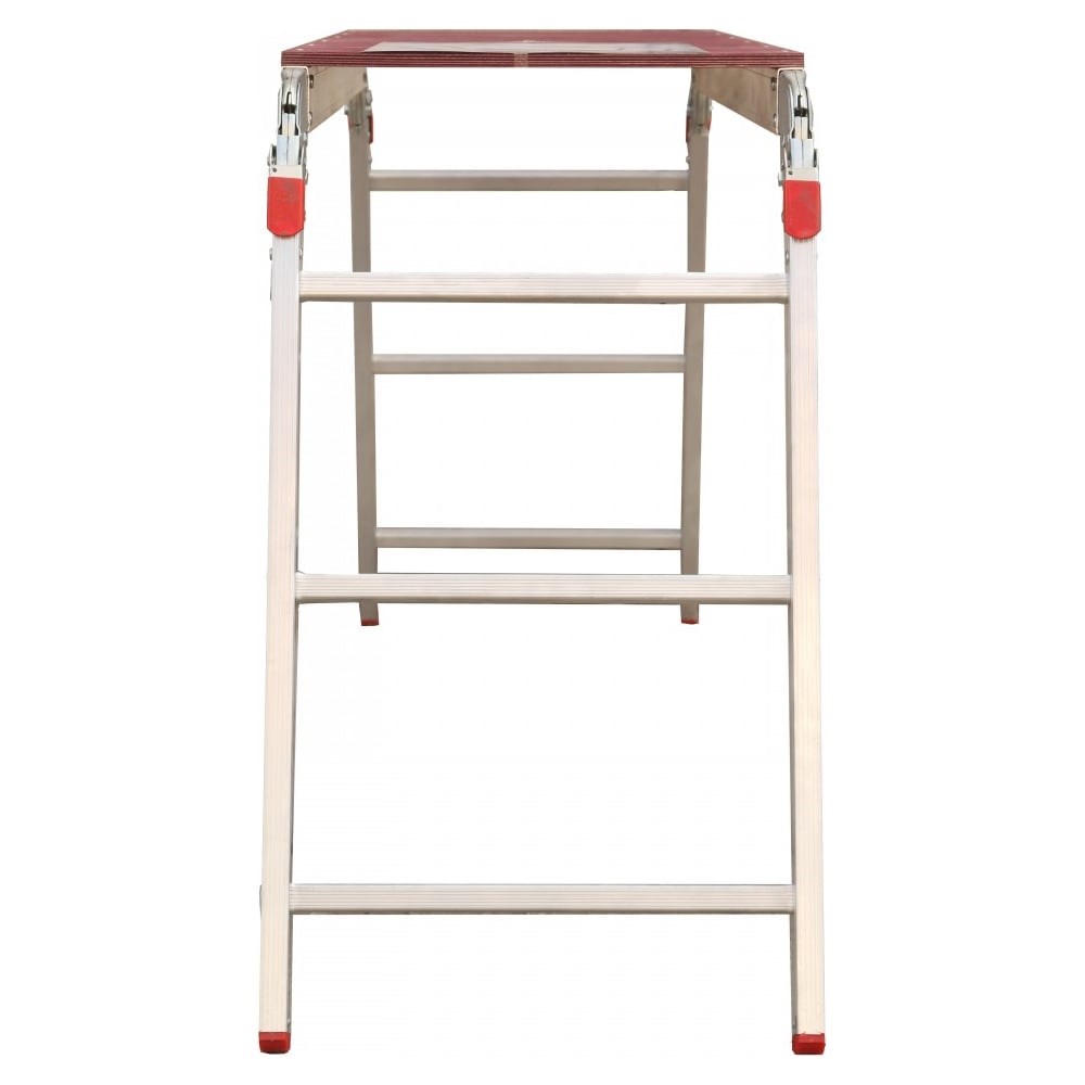 Рабочие подмости 3х6х3 Россия 97962 выполнены из прочного алюминиевого профиля. Благодаря рифлению ступеней значительно уменьшена вероятность соскальзывания ноги. Для упрочнения соединений использована многократная развальцовка. Это обеспечивает долговечность использования модели. Замки автоматически фиксируют положение.