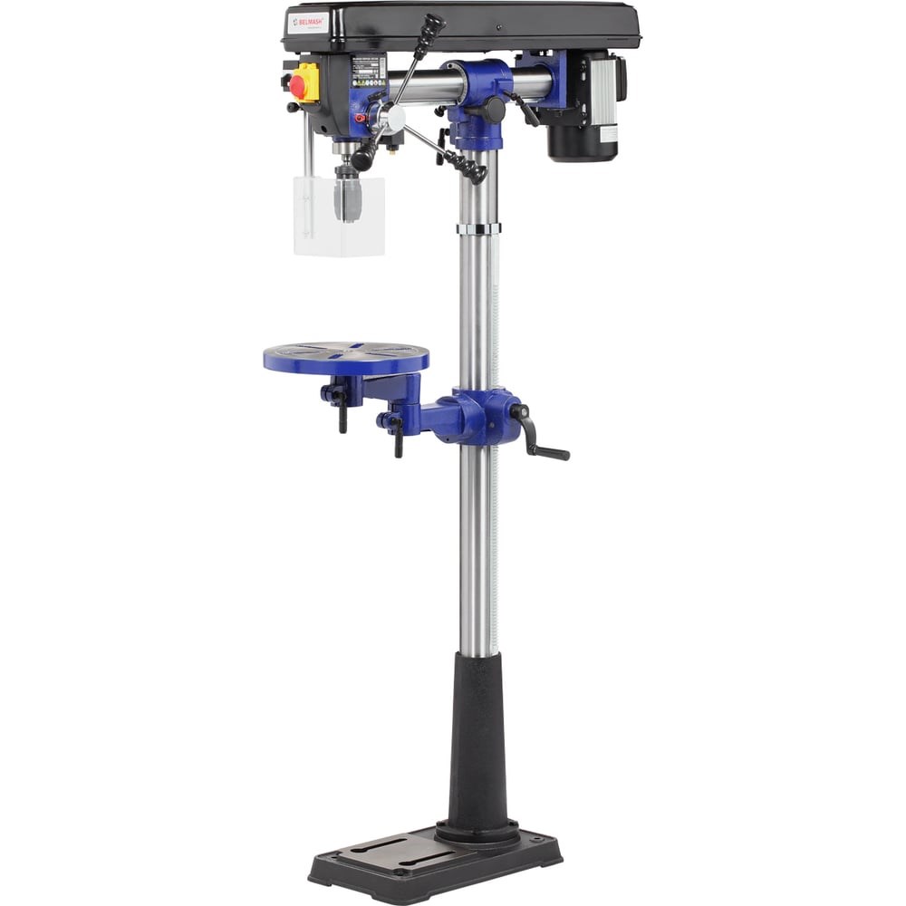 Станок предназначен для обработки различных материалов вращающимся режущим или шлифующим инструментом, с целью получения сквозных или глухих отверстий, растачивания, зенкерования. Модель является радиальной, то есть возможны вращение сверлильной головки относительно вертикальной оси (360 град.), наклон относительно горизонтальной оси (45 град. вправо, 90 град. влево) и есть ход по горизонтали. Стол, опора и корпус сверлильной головки выполнены из чугуна.Двигатель асинхронный, мощность 600 Вт. Станок рассчитан на подключение к трехфазной сети 400 В. Имеется пять ступеней скорости шпинделя (от 500 до 2500 об/мин).Переключение производится за счет переброски ремня. Для этого необходимо открыть крышку ременного отсека, ослабить барашек крепления двигателя, тем самым получив возможность смещения шкива, перекинуть ремень и проделать операцию в обратной последовательности.Станок один из самых высоких в линейке сверлильного оборудования BELMASH – 1630 мм, подходит для обработки заготовок большой толщины. Максимальное расстояние между шпинделем и столом – 740 мм, между шпинделем и основанием - 1300 мм.Заготовку можно крепить как к рабочему столу, так и к основанию. В комплекте предусмотрены тиски. Для их крепления есть шесть пазов на рабочем столе и два на основании. Рабочий стол (диаметр 300 мм) имеет регулировку по высоте, возможность как наклона (-45…+45°) и поворота.