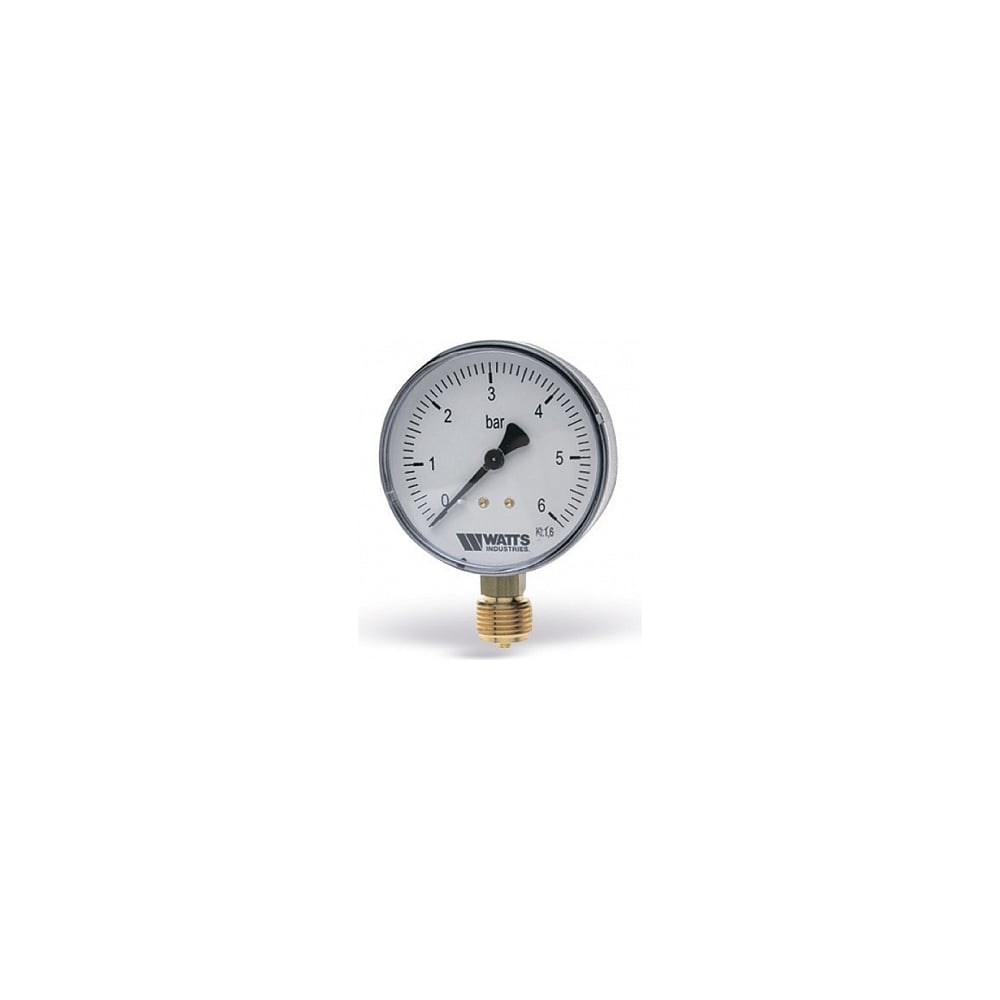 Манометр Watts F+R200 радиальный 0-6bar, корпус 63mm 10007723 предназначен для измерения давления в газообразных и жидких, не сильно вязких и не кристаллизирующихся измеряемых средах, не агрессивных по отношению к медным сплавам в системах отопления, водоснабжения и охлаждения. Состоит из черного пластмассового корпуса с акриловым стеклом, оснащен черной указательной стрелкой.