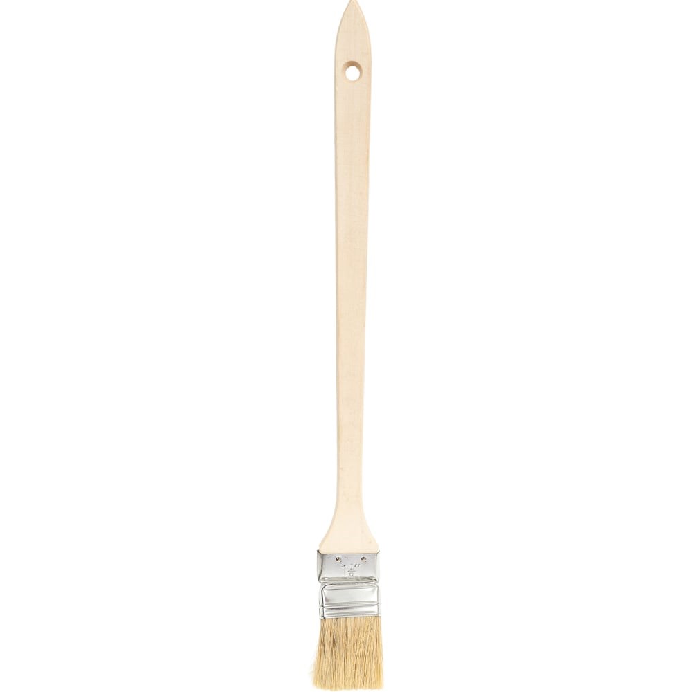 Кисть радиаторная РОССНА Р860777. Кисть радиаторная РОССНА предназначена для нанесения красок, эмалей и лака на различные поверхности. Натуральная щетина подходит для равномерного распределения эмали и густых лакокрасочных покрытий без подтёков.Для обработки труднодоступных поверхностей всеми видами лакокрасочных материалов, в первую очередь масляной краской и эмалями. Натуральная светлая щетина в металлической оцинкованной оправке, деревянная ручка, топс 50%