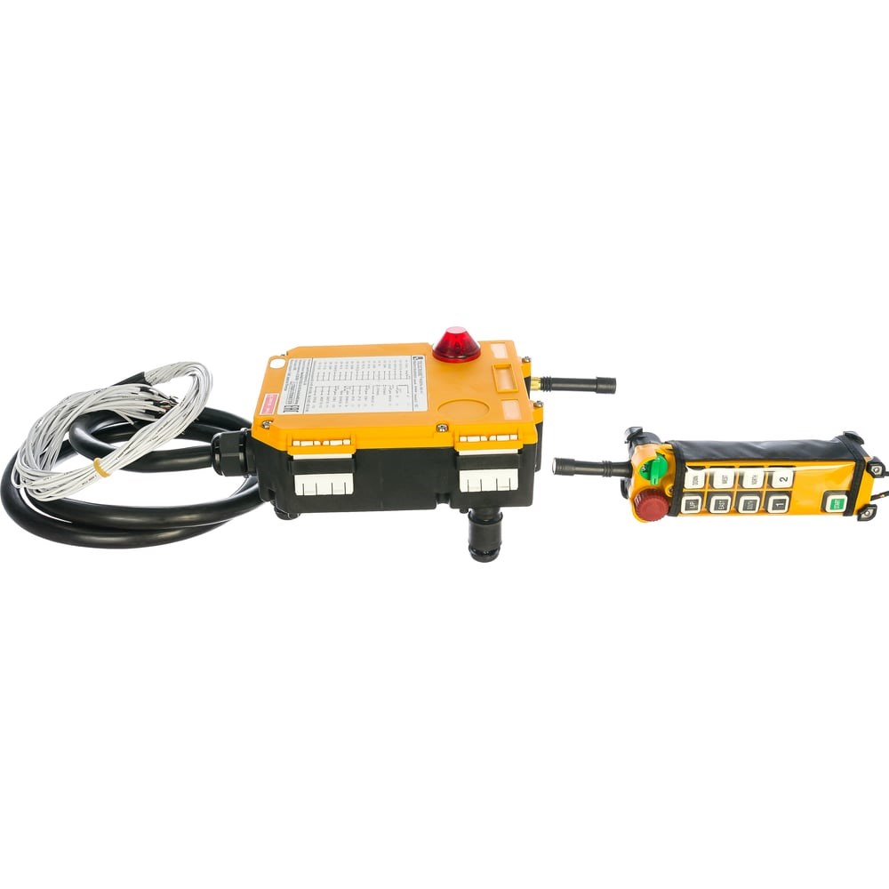 Радиоуправление TELECRANE А24-8D (пульт 8 кн, 2 ск. + приемник, питание 220/380 В) 00005046 представляет собой устройство для дистанционного управления талью и тельфером. Используется на складах, в строительстве, автосервисах и на производстве. Отличается простотой эксплуатации.Радиоуправление "Telecrane" А24-8D, комплект (Пульт 8 кнопок, 2 скорости + Приемник) (Питание приемника: 220/380 В) Внимание! Не допускается использование нескольких комплектов в одном месте с одинаковыми каналами Наличие голографических наклеек подтверждающих подлинность товара. Дистанция управления до 100 метров. Низкое энергопотребление передатчика (2 батарейки размера АА срок работы до 4 месяцев). Стандартное питание приемника: 220-380 V, возможно исполнение приемника на 12-24 V Диапазон температур -35°С ~ +85°С. Класс электрозащиты устройства IP65. Лёгкое программирование совместимое с Microsoft Windows для настройки по потребностям заказчика. Корпус изготовлен из прочного фибер-гласа.