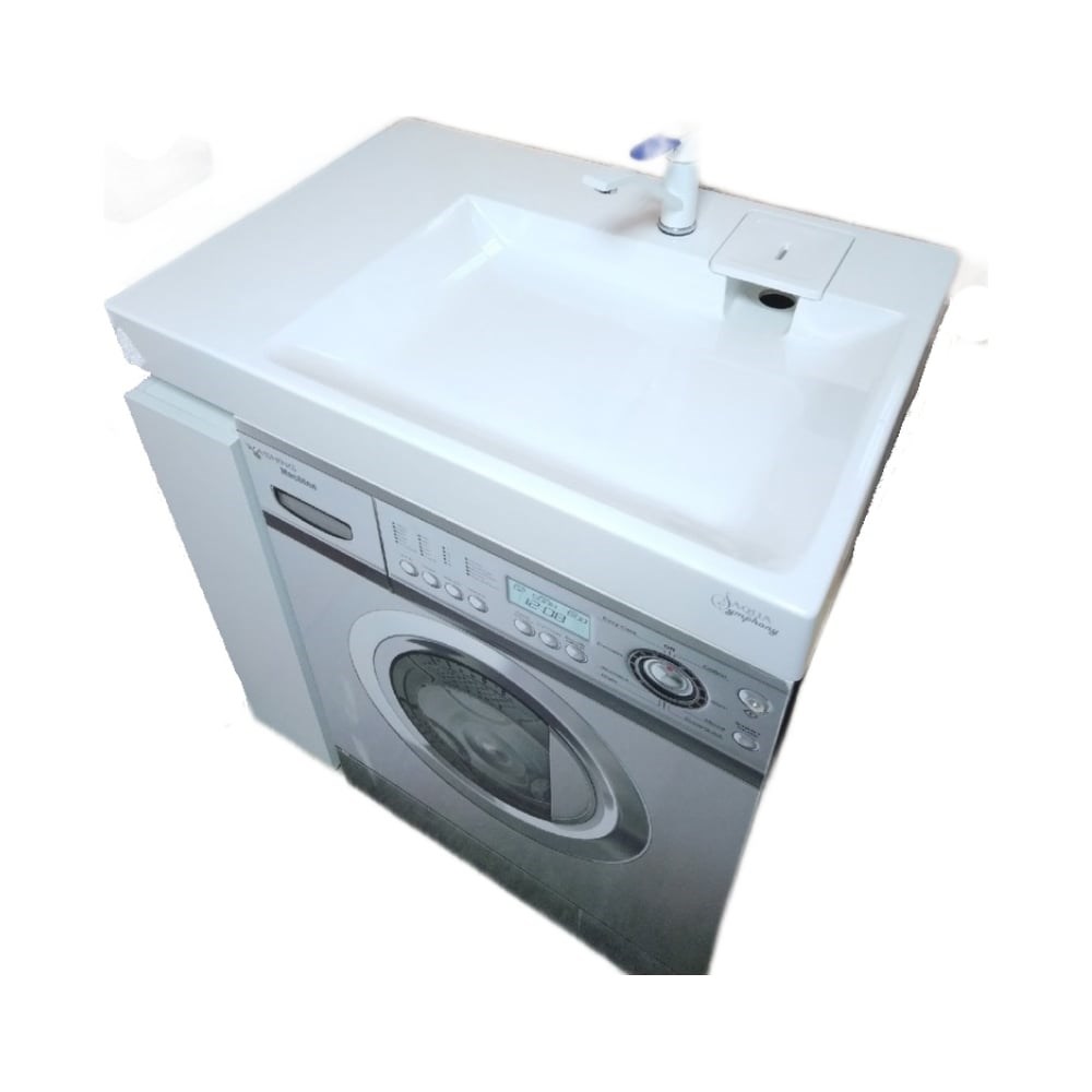 Раковина AQUAphonia СтМ «BLUES - прав.» (80x55) 4687202287499 из искусственного (литьевого) мрамора с возможностью установки над стиральной машиной. Целью комбинирования раковины и стиральной машины является экономия и без того дефицитного пространства ванной комнаты. Это же является и главным преимуществом. Установка раковины над стиральной машиной позволит на малой площади поместить всё необходимое сантехническое и электрическое оборудование. Более того, не нужно искать место под машинку-автомат в другой комнате (кухне, коридоре).