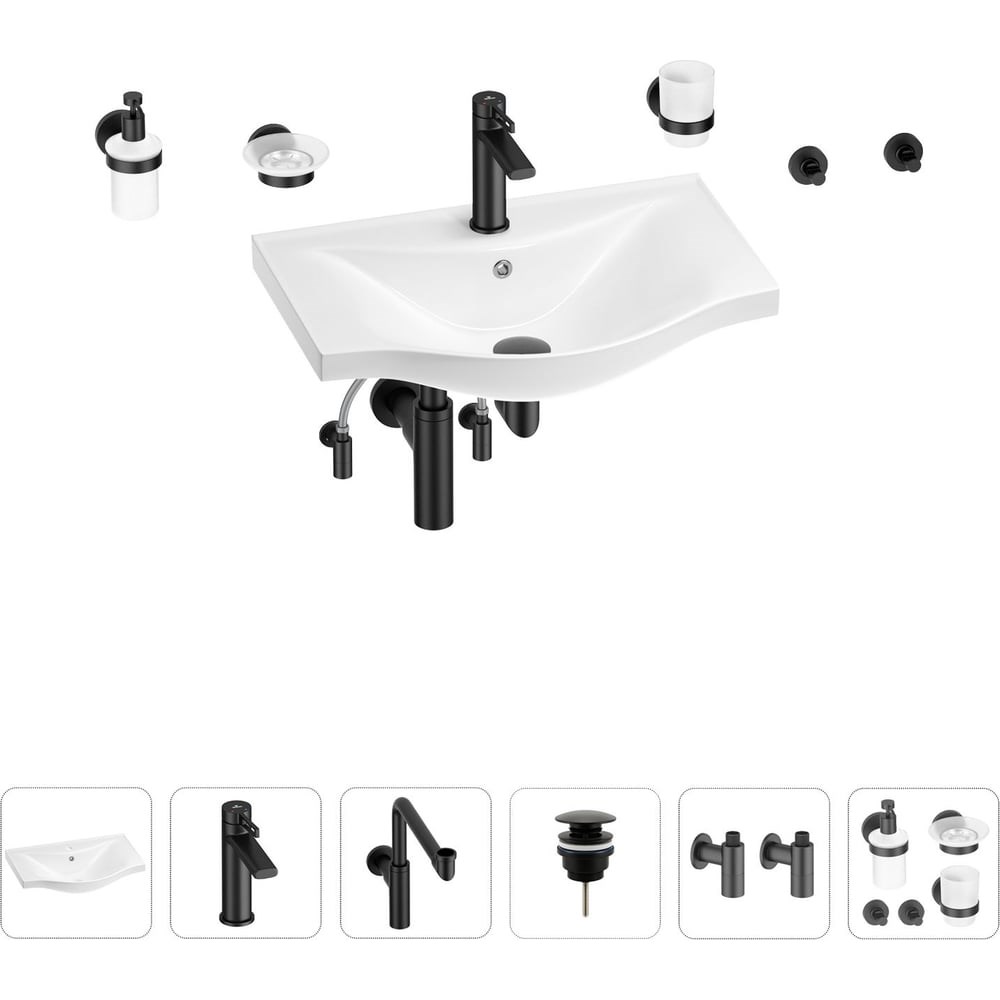 Раковина для ванной Wellsee Bisou в наборе 9 в 1 201007247