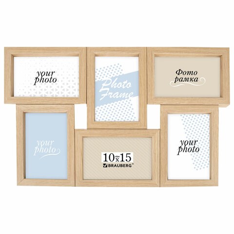 Рамка 10х15 см для 6 фото небьющаяся, багет 15 мм, МДФ, BRAUBERG "Collage", цвет мокко, 391262