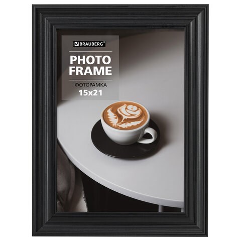 Рамка 15х21 см небьющаяся, багет 27 мм, пластик, BRAUBERG "Viscount", черная, 391256