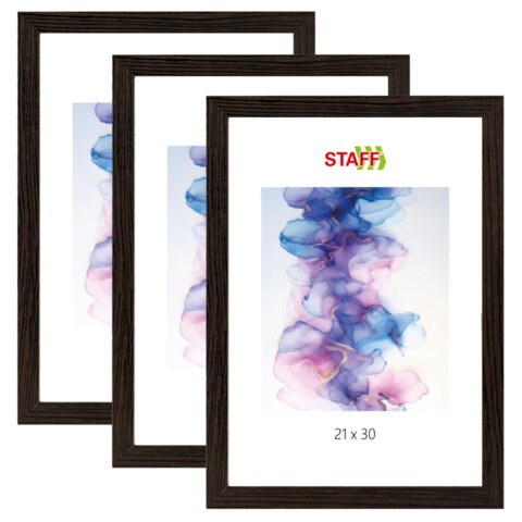 Рамка 21х30 см небьющаяся, КОМПЛЕКТ 3 штуки, багет 18 мм МДФ, STAFF "Grand", цвет венге, 391333