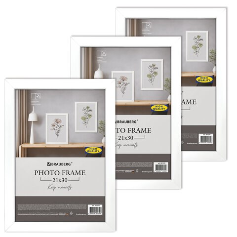 Рамка 21х30 см небьющаяся, КОМПЛЕКТ 3 штуки, багет 21 мм, МДФ, BRAUBERG "Idea", белая, 391392