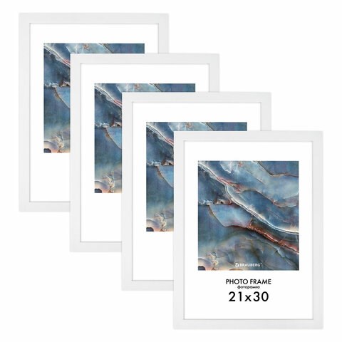 Рамка 21х30 см небьющаяся, КОМПЛЕКТ 4 шт., багет 16 мм, МДФ, BRAUBERG "Basic", белая, 391258