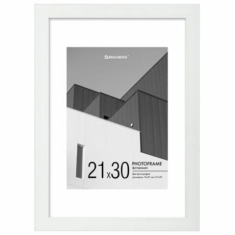 Рамка 21х30 см с паспарту 15х21 см небьющаяся, багет 20 мм пластик, BRAUBERG "New Age", белая, 391276