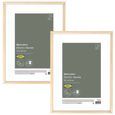 Рамка 30х40 см небьющаяся, КОМПЛЕКТ 2 штуки, багет 12 мм, дерево, BRAUBERG "Woodray", цвет натуральный, 391389