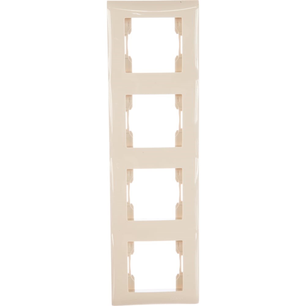 Четырехместная вертикальная рамка Volsten V01-12-A42-M Magenta Crema, 9972 применяется для монтажа в стандартную монтажную коробку различной электротехнической продукции. Корпус рамки изготовлен из поликарбоната и соответствует немецкому стандарту, когда между встраиваемыми изделиями располагаются разделительные перегородки. Такая рамка пригодна только для вертикального расположения на стене и устанавливается с приборами серии Magenta Crema.