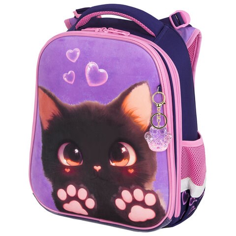 Передняя панель ранца покрыта мягкой велюровой тканью, пушистой и приятной на ощупь. Рисунок на передней панели ранца выполнен с применением контрастных цветов, а оригинальный брелок-подвеска в виде таба-лапки дополняет дизайн ранца.