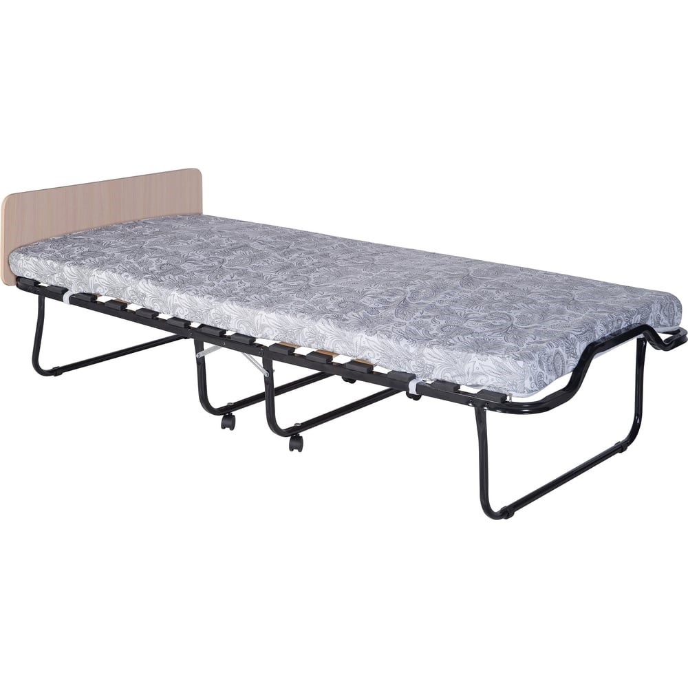 Раскладная кровать Удачная Мебель Элеонора-М с изголовьем, дуб В31-М может стать дополнительным спальным местом. Кровать комплектуется мягким холлконовым матрасом 90 мм толщиной со съемным чехлом. Материал основания выполнен из стальной трубы диаметром 25 мм, что гарантирует долгий срок службы.