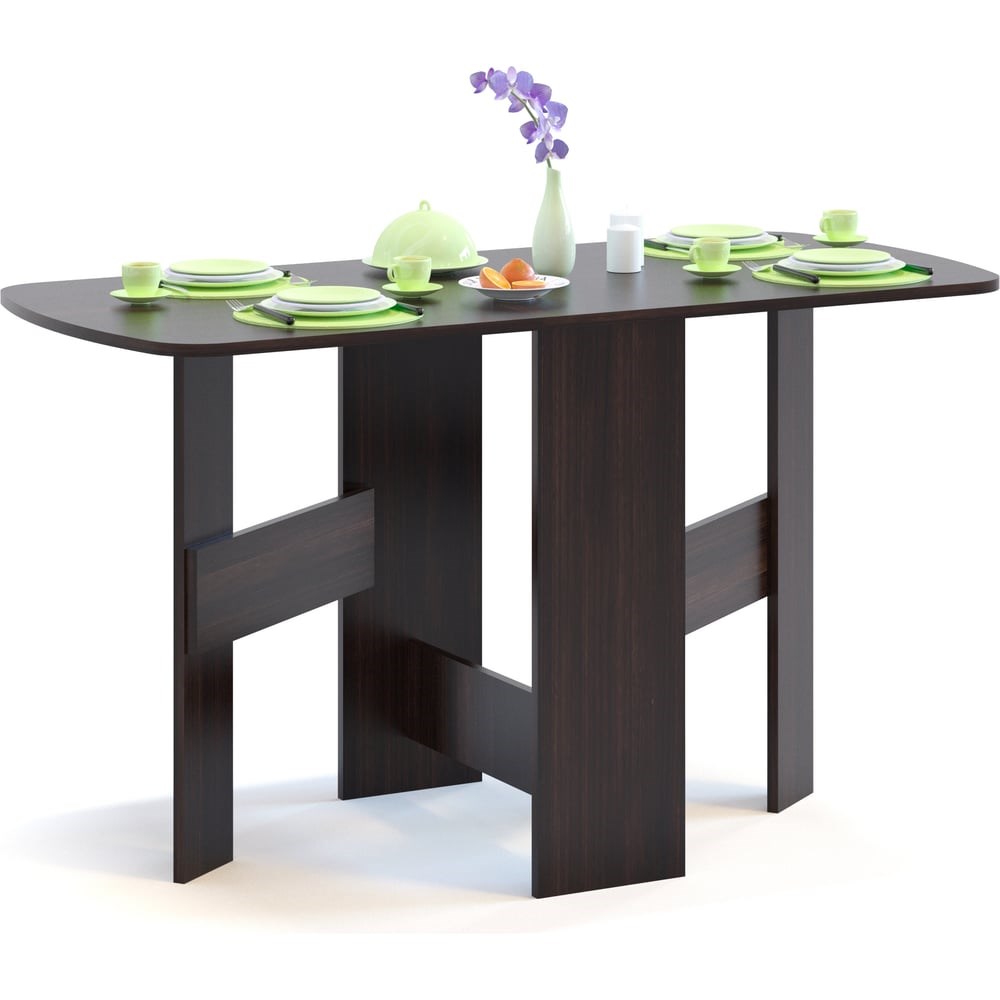 Раскладной стол СОКОЛ венге СП-10.1 СП10В5 прекрасно подойдет для малогабаритной квартиры. В сложенном состоянии ширина стола всего 26 см. В разложенном виде стол превращается в полноценный обеденный стол. Также вы можете разложить стол только наполовину.