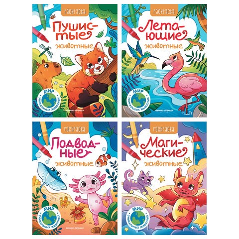 Раскраска "РАЗНЫЕ ЖИВОТНЫЕ", 195х250 мм, 16 страниц, АССОРТИ, Феникс-Премьер
