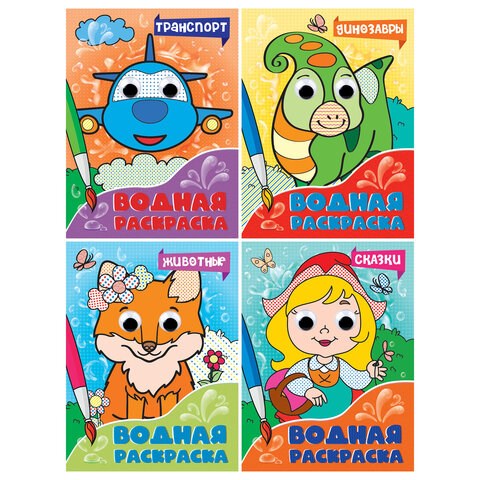 Раскраска водная с глазками, 198х270 мм, 16 стр., АССОРТИ, ПП