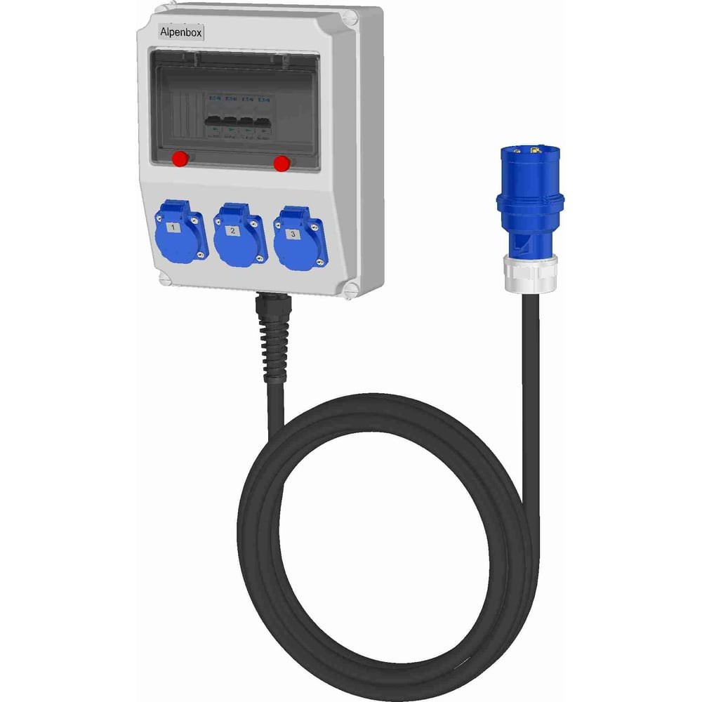 Распределительное устройство ALPENBOX 0010029 РУСп с комбинацией розеток настенного и переносного монтажа в корпусе из ударопрочного безгалогенного пластика ABS, оснащен системами защиты и контроля. За счет ударопрочного и атмосферостойкого корпуса устройство можно использовать вне пределов помещений, причем в самых сложных погодных условиях. Количество модулей - 9 мест.