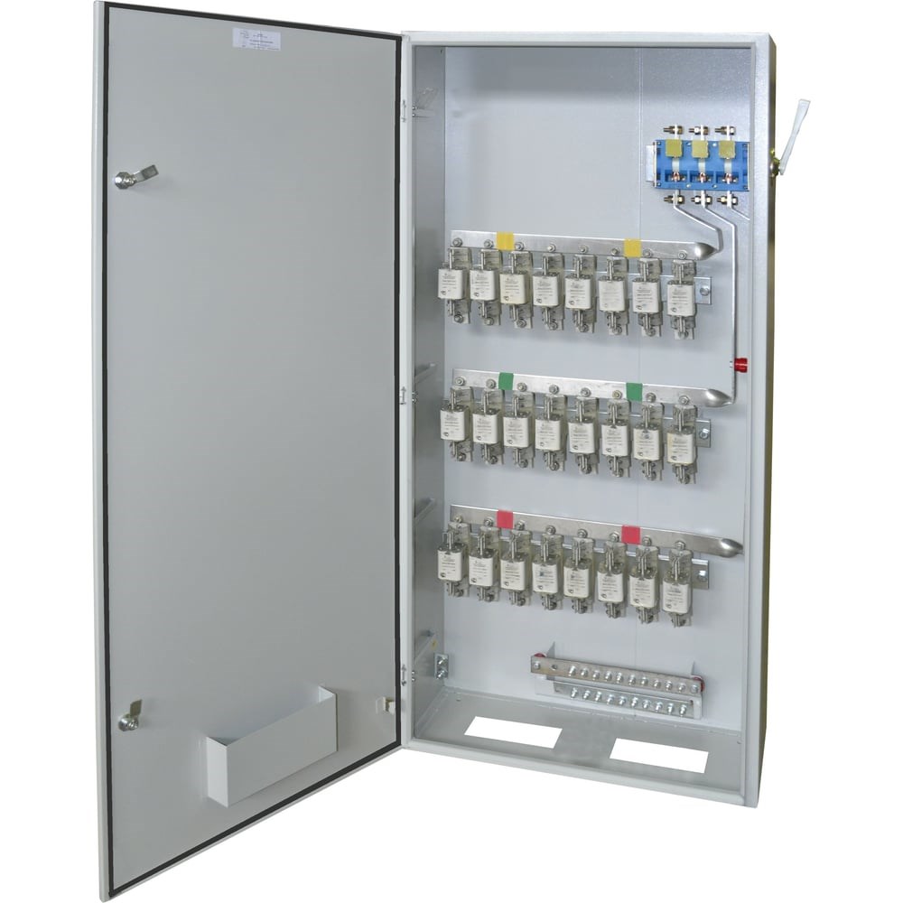 Распределительный силовой шкаф Узола ШРС 1-09-7-54-УЗ-001 (8х250) 400A IP54 U45042900 напольной конструкции предназначен для приема и распределения электрической энергии. Шкаф рассчитан на номинальный ток до 400А и номинальное напряжение до 380В трехфазного переменного тока частотой 50Гц. Количество предохранителей на отводящих линиях - 8хПН2 250А.