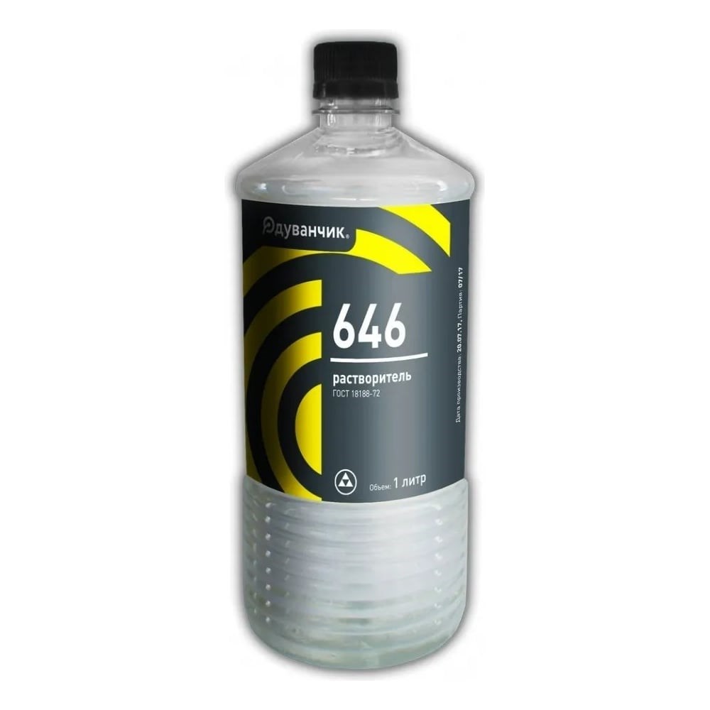 Бесцветная или желтоватая жидкость без осадка. Является смесью из летучих органических жидкостей: ароматических углеводородов, кетонов, спиртов и эфиров. Согласно ГОСТу 18188-2020растворитель 646предназначен для разбавления нитроэмалей, нитролаков и нитрошпатлевок общего назначения.Основные марки разбавляемых лакокрасочных материалов.Лаки: НЦ-269, НЦ-279, НЦ-292, НЦ-5108, ЭП-524Эмали: НЦ-170, НЦ-184, НЦ-216, НЦ-217, НЦ-25, НЦ-246, НЦ-258, НЦ-262, НЦ-271, НЦ-273, НЦ-1104, НЦ-282, НЦ-291, НЦ-299, НЦ-929НЦ-5100, НЦ-5123Нитроэмали для грузовых автомобилей, нитроэмали № 924, ЭП-773, КО-83, НЦ-1124, НЦ-112Грунтовки: НЦ-081, МС-067, МЧ-04Шпаклевки: НЦ-007, НЦ-008, НЦ-009, ЭП-0010, ЭП-0020СоставБутилацетат – 10%.Этилцеллозольв – 8%.Ацетон – 7%.Бутанол – 10%.Этанол – 15%.Толуол – 50%.Меры предосторожности:Относится кIII-му классу опасности,следует придерживаться определенных мер предосторожности: надевать резиновые перчатки, все работы проводить в хорошо проветриваемом помещении. При контакте с кожей, смыть растворитель большим количеством воды с мылом. Гарантийный срок хранения24 месяца со дня изготовления.