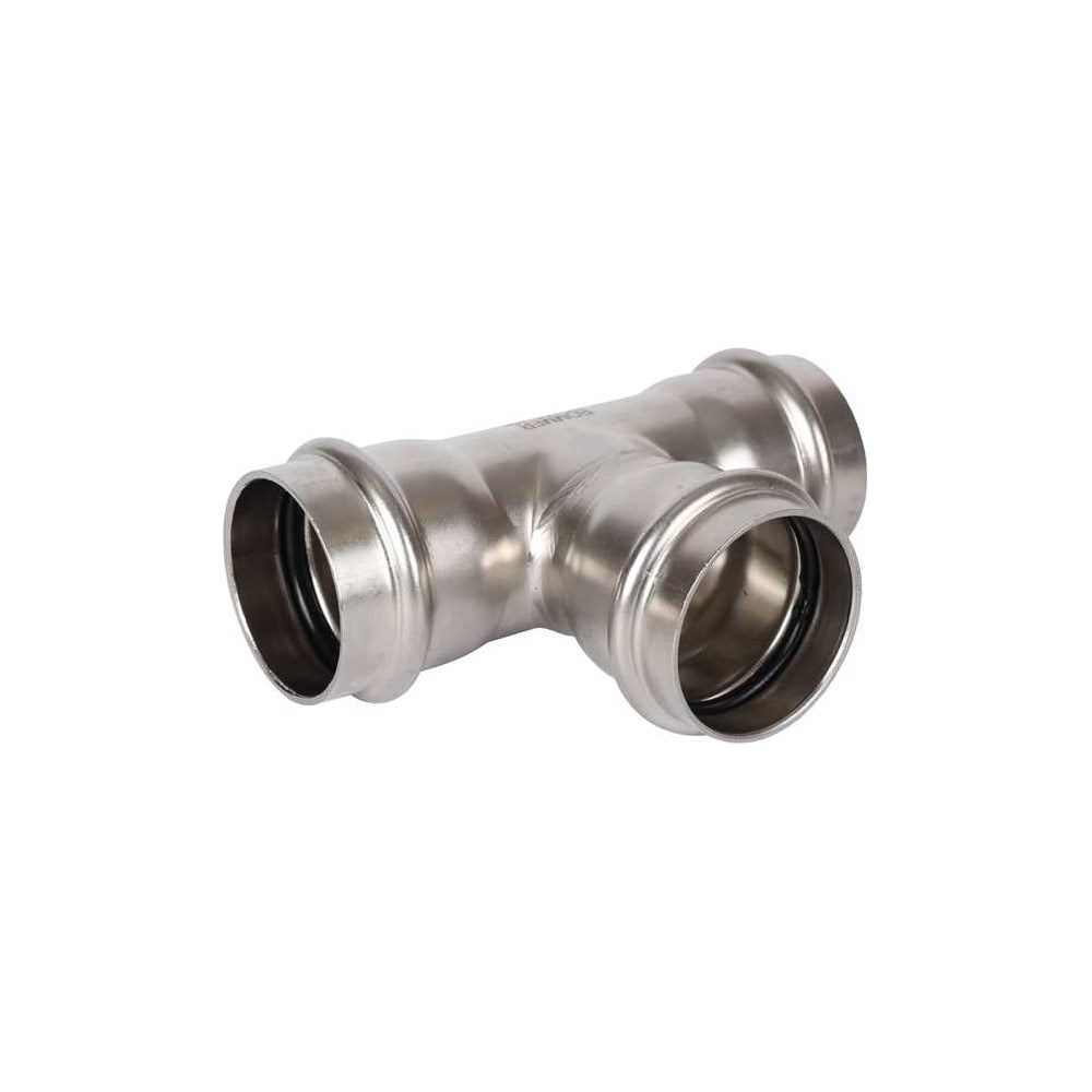 Тройник обеспечивает надежное и герметичное соединение труб. Изготовлен из высококачественной нержавеющей стали SU304, а толщина стенок составляет 1,5 мм. Для прессования фитинга применяется профиль V-образной насадки инструмента, что обеспечивает качественное соединение элементов трубопровода. Системы, собранные из «нержавейки», выглядят крайне презентабельно и эстетично. Сами трубы не нуждаются в дополнительной обработке и не окисляются со временем.