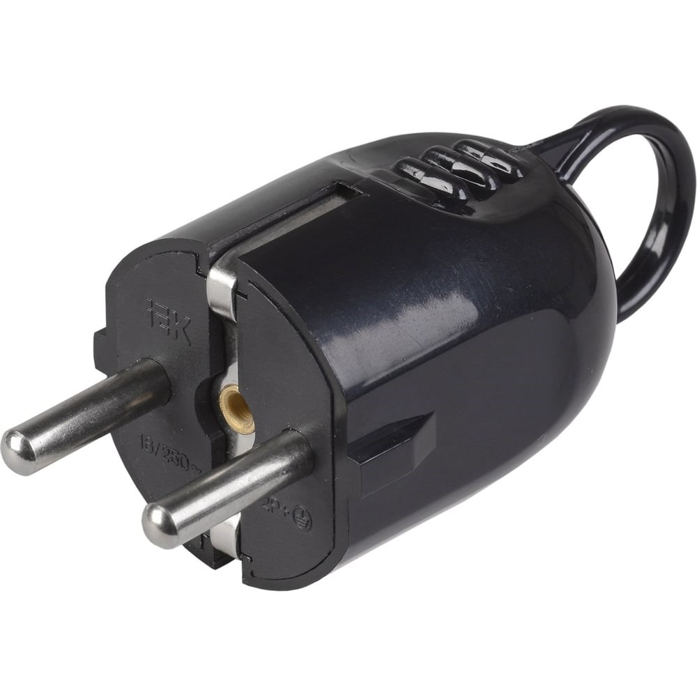 Разборная угловая вилка IEK ВПу12-02-Ст, с заземляющим контактом, с кольцом, 16А, черная EVP12-16-01-K02