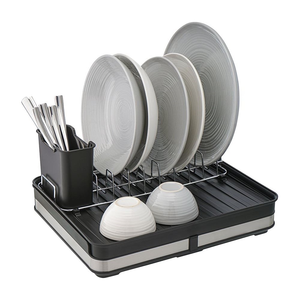 Сушилка Atle – компактная, но в то же время вместительная модель с раздвижной конструкцией, в которой предусмотрены отделения для посуды и кухонных принадлежностей. Удобное размещение и надежную фиксацию тарелок и других емкостей обеспечивают железные разделители. Поддон выполнен из практичного полипропилена, который легко моется. Стальные элементы на корпусе имеют специальное покрытие против отпечатков пальцев. Настольную сушилку можно размещать в любом месте и для ее установки не требуется делать отверстия в стене. Сушилку можно очищать от загрязнений в теплой мыльной воде с помощью мягкой губки. Запрещается использование агрессивной бытовой химии и абразивных материалов.