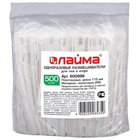 Размешиватель одноразовый пластиковый 115 мм, КОМПЛЕКТ 500 шт., БЮДЖЕТ для чая и кофе ПС, LAIMA, 600998