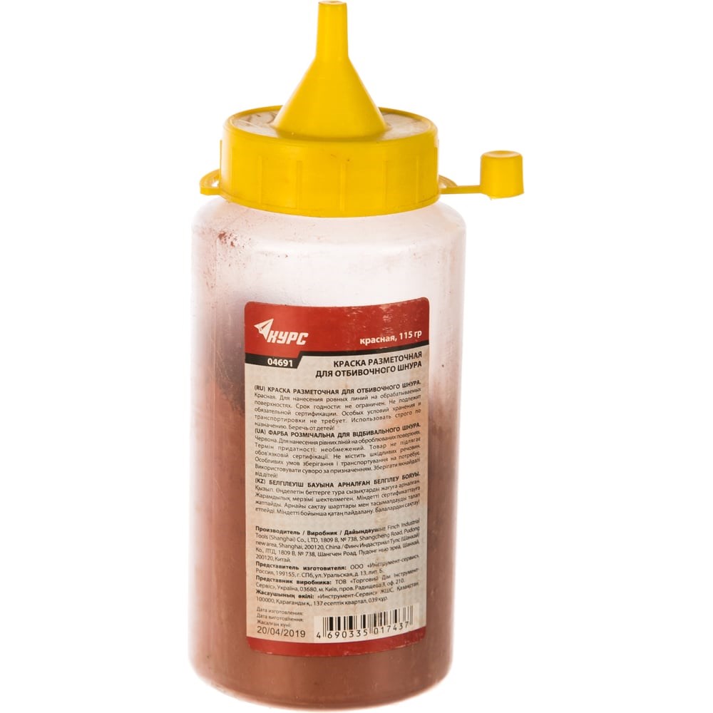 Краска разметочная красная КУРС 04691 - порошковый разметочный материал, применяется для строительных или ремонтных работ. Данная краска предназначена для отбойного шнура. Разметочный материал находится в специальной емкости для удобного использования и хранения.