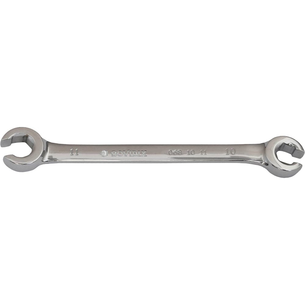 Разрезной ключ 10-11мм BOVIDIX 0681011 имеет двустороннюю конструкцию, внешне напоминает обыкновенный рожковый гаечный ключ. Данная модель служит для ремонта различных систем автомобиля, где применяются трубки и шланги.