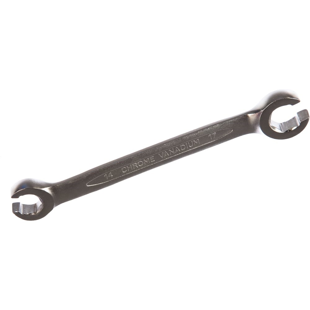 Разрезной ключ, холодная штамповка 14*17 мм Cr-V KRAFT KT 700747 охватывает 5 из 6 граней крепежа. Удобство использования и безопасность работы обеспечивают высокую скорость и эффективность труда сантехника или слесаря. Прочная хромованадиевая сталь выдерживает значительное усилие.