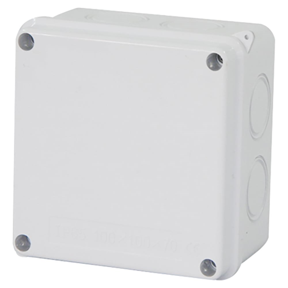 Разветвительная коробка STEKKER EBX31-02-65, 7 выбивных отверстий, IP65, светло-серая 39558 используется для защиты соединений жил кабелей от воздействия пыли, влаги и механических повреждений при монтаже проводки, телефонных стыков, розеток, выключателей, регуляторов освещенности и устройств связи, закрывая неприглядные концы жил и применяемые клеммники или колпачки СИЗ. В зависимости от модели коробки комплектуются гермовводами для подключения гофрированных, гладких или армированных труб и обеспечения класса защиты в соответствие с нормами, либо имеют по бокам размеченные выбивные отверстия. Коробки распределительные предназначены для крепления на стены, потолки или на лотки. Разветвительные коробки для наружного монтажа используются в средах с повышенной влажностью и запыленностью. Высокая степень защиты достигается за счет использования уплотнительного шнура в крышке, винтового способа её крепления и гермовводов (в зависимости от модели).