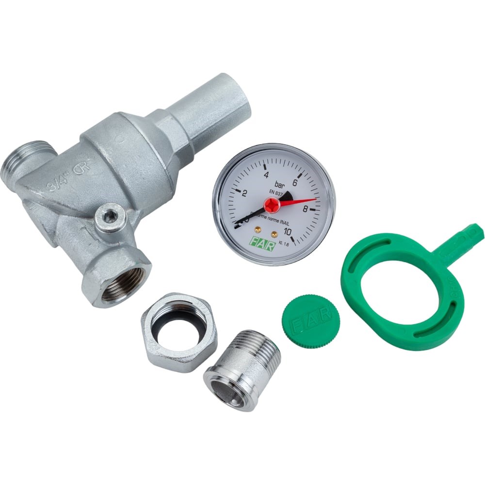 Редуктор хром FAR 3/4" ВР-НР, с манометром FA 2835 34 - предохранительное устройство для стабилизирования давления в трубопроводной системе отопления или водоснабжения. Для удобства эксплуатации изделие оснащено манометром.