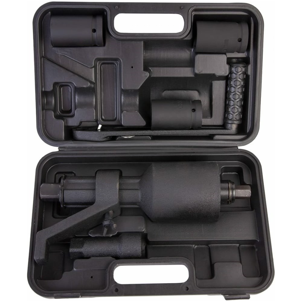 Ручной редукторный двухскоростной гайковерт WDK-736DL, также известный как "мясорубка", предназначен для быстрого монтажа демонтажа колесных гаек грузовых автомобилей и других тяжело нагруженных крепежных соединений. Благодаря передаточному числу 1:38 и 1:58 этот инструмент эффективно снимает и затягивает тяжелонагруженные болты с минимальными усилиями, что делает его незаменимым в дорожных условиях, даже при отсутствии доступа к электричеству или сжатому воздуху.Поставляется в прочном пластиковом кейсе.В наборе три головки: 30 мм, 32 мм, 33 мм.