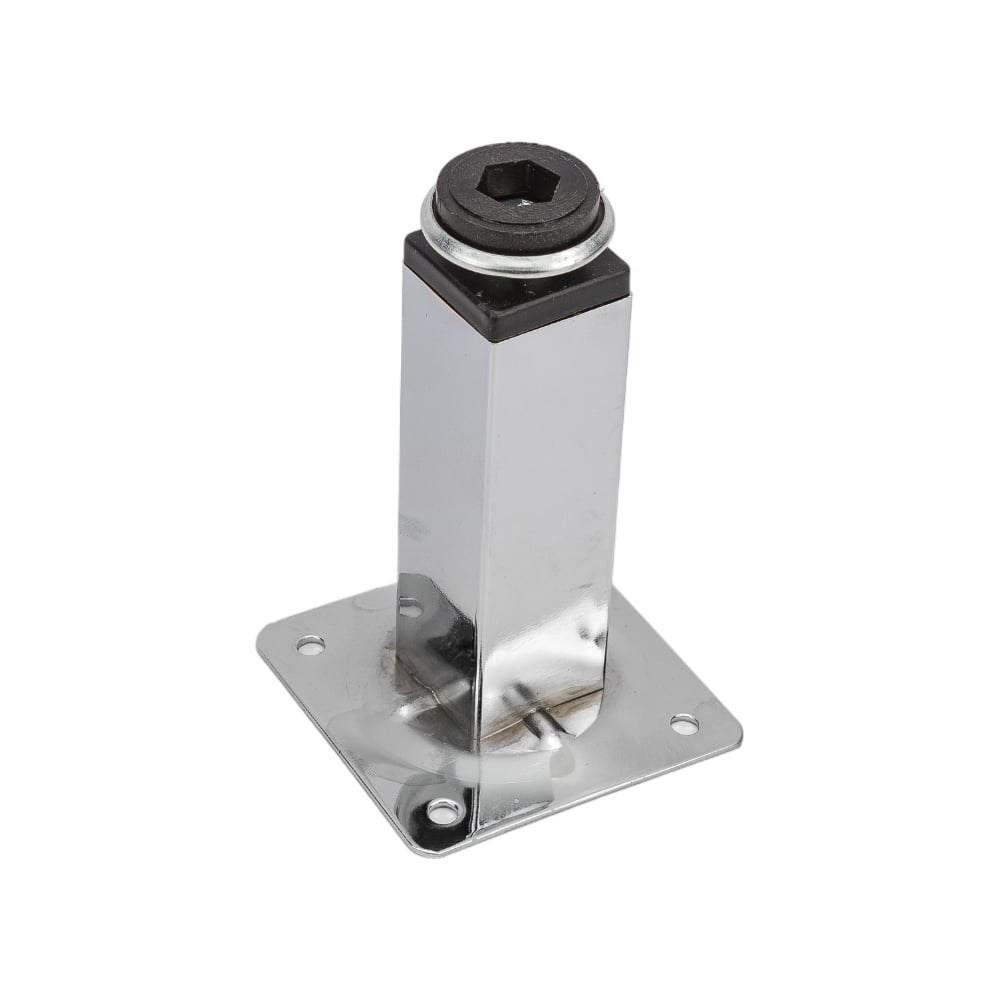 Область применения: используется как опора неподвижной мебели. Применяется при сборке стеллажей, шкафов, тумб, подставок.Позволяет отрегулировать высоту конструкции и расположить ее на неровной поверхности.Материал:углеродистая сталь с полимерным покрытием, пластик. Особенности:фурнитура не только придает изделию стильный вид, но также обеспечивает высокую устойчивость конструкции. В верхней части расположены четыре отверстия для крепления ножки при помощи шурупов.