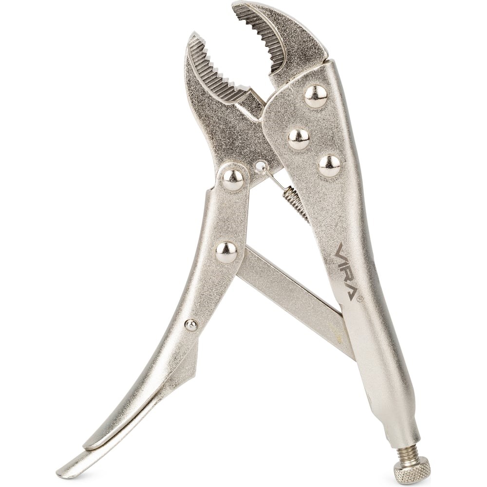 Клещи зажимные с фиксатором регулируемыеVIRA 180 ммКлещи VIRA используются для захвата и удержания деталей или крепежа, откручивания болтов и гаек с поврежденными гранями, для работ с трубами и деталями круглого, квадратного и шестигранного сечения. Подойдут для монтажа сантехнического, отопительного, вентиляционного оборудования, ремонта автомобилей и сварочных работах. Благодаря регулировочному винту легко настраиваются под нужный размер, а фиксатор надежно удерживает инструмент в зажатом состоянииЗажим изготовлен из высокоуглеродистой стали CS45. На рабочих губках есть закаленные зубцы, которые обеспечивают надежный захват.Характеристики:Длина инструмента (мм): 180 (7”)Максимальное раскрытие зева (мм): 40Материал инструмента: высокоуглеродистая стальCS45Твердость инструмента (HRC): 45-50Применение: для захвата и удержания деталей или крепежа, откручивания болтов и гаек с поврежденными гранями, для работ с трубами и деталями круглого, квадратного и шестигранного сечения