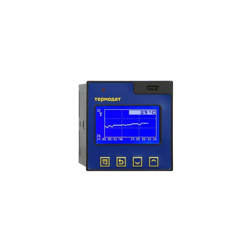 Термодат-16Е6-A-F - одноканальный регулятор температуры по программе и электронный самописец с графическим 3,5″ дисплеем. Прибор оснащен USB-разъемом для снятия архивных данных на Flash-носитель. Прибор имеет универсальный вход, предназначенный для подключения термопар или термосопротивлений, а также датчиков с токовым выходом. Разрешение 1°С или 0,1°С задается пользователем. Может управлять как нагревателем, так и охладителем. Интуитивно понятное управление обеспечивается 4 кнопками внизу экрана. Является аналогом и заменой следующих устаревших приборов: Термодат-16Е1, Термодат-16Е2, Термодат-16Е3. Дополнительная техническая информация: Входы: Один универсальный вход, один дискретный вход Выходы: 2 реле, транзисторный выход, релейно-симисторный выход, аналоговый выход Считывание архива: USB-разъем Закон регулирования: ПИД, двухпозиционный, трехпозиционный, регулирование по программе Запуск регулирования по графику: есть Диапазон температур измерения: От -270°С до 2500°С, (зависит от типа датчика) Дисплей: Графический жидкокристаллический экран 67х33мм, разрешение 128х64 точек Габаритные размеры: Лицевая панель 96х96мм., глубина 92мм, вырез в щите 92х92мм