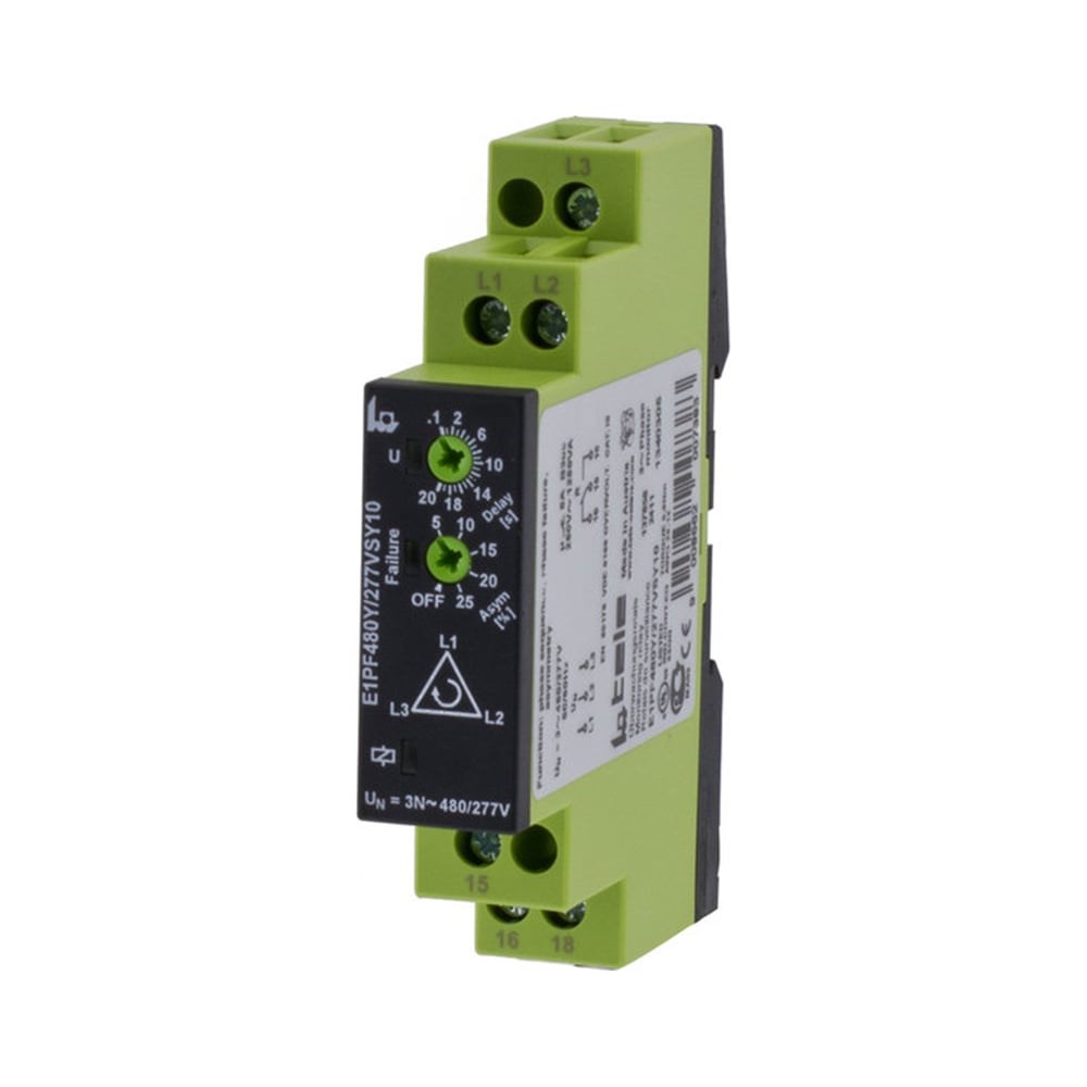 Реле контроля фаз TELE E1PF480Y/277VSY10 1340305 имеет следующие возможности: Контроль последовательности (чередования) фаз. Контроль на обрыв фаз. Контроль асимметрии фаз с настраиваемым порогом срабатывания. Настраиваемая задержка срабатывания для асимметрии. Реле контроля фаз E1PF480Y/277VSY10 способно работать как в сети 230/400V так и в сети 277/480V.