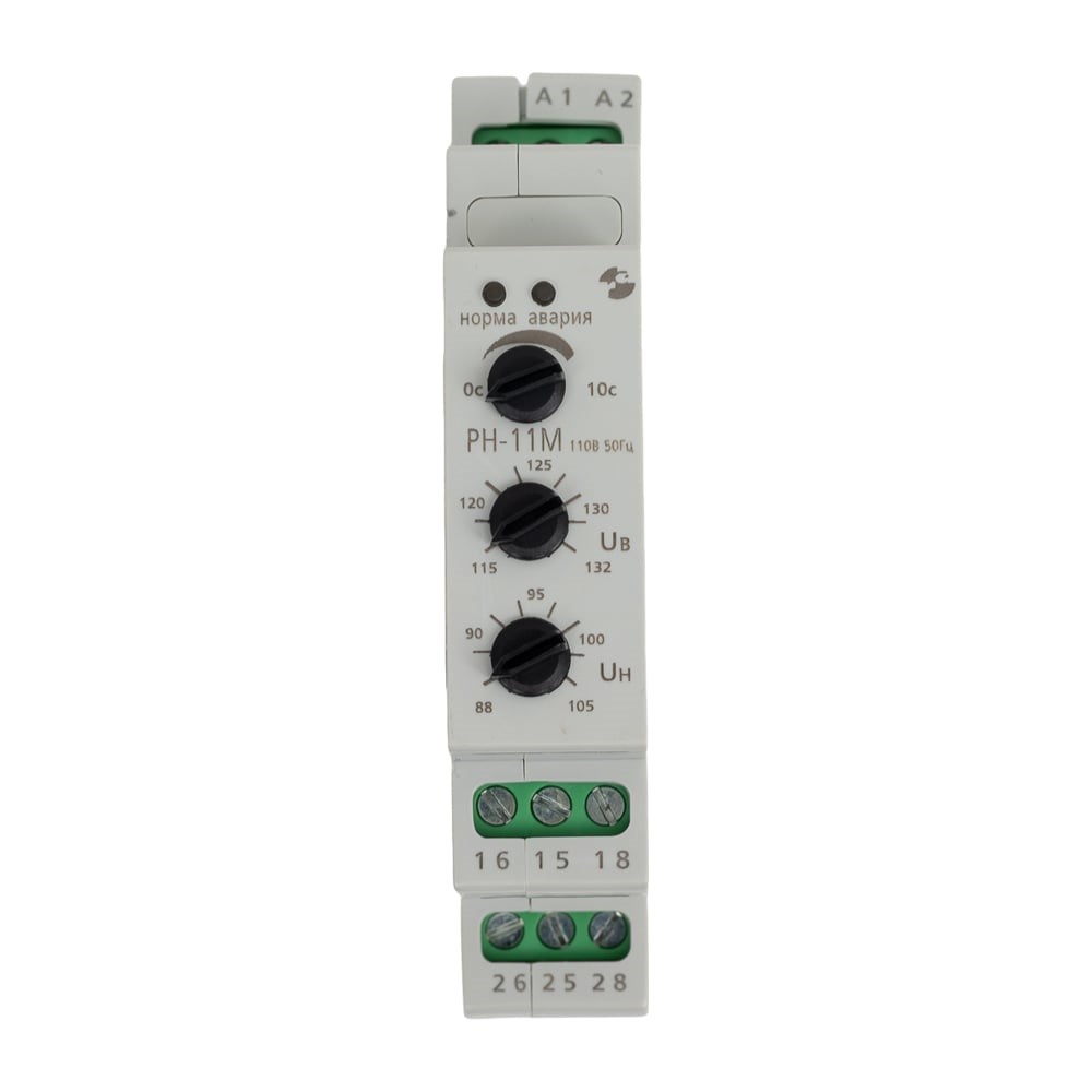 Реле контроля напряжения Реле и Автоматика, РН-11М 110В 50Гц A8223-80108493 предназначено для контроля величины напряжения сети переменного тока.На передней панели находятся: потенциометры регулировки верхнего (от 88 до 132В) и нижнего (от 104 до 115В) значений контролируемого напряжения, потенциометр установки времени срабатывания, а также индикатор состояния исполнительного реле.Особенности:напряжение питания: 110В 50Гцконтакты: 2 переключающих (8А)срабатывание с регулируемой выдержкой времени (0,1...10с)