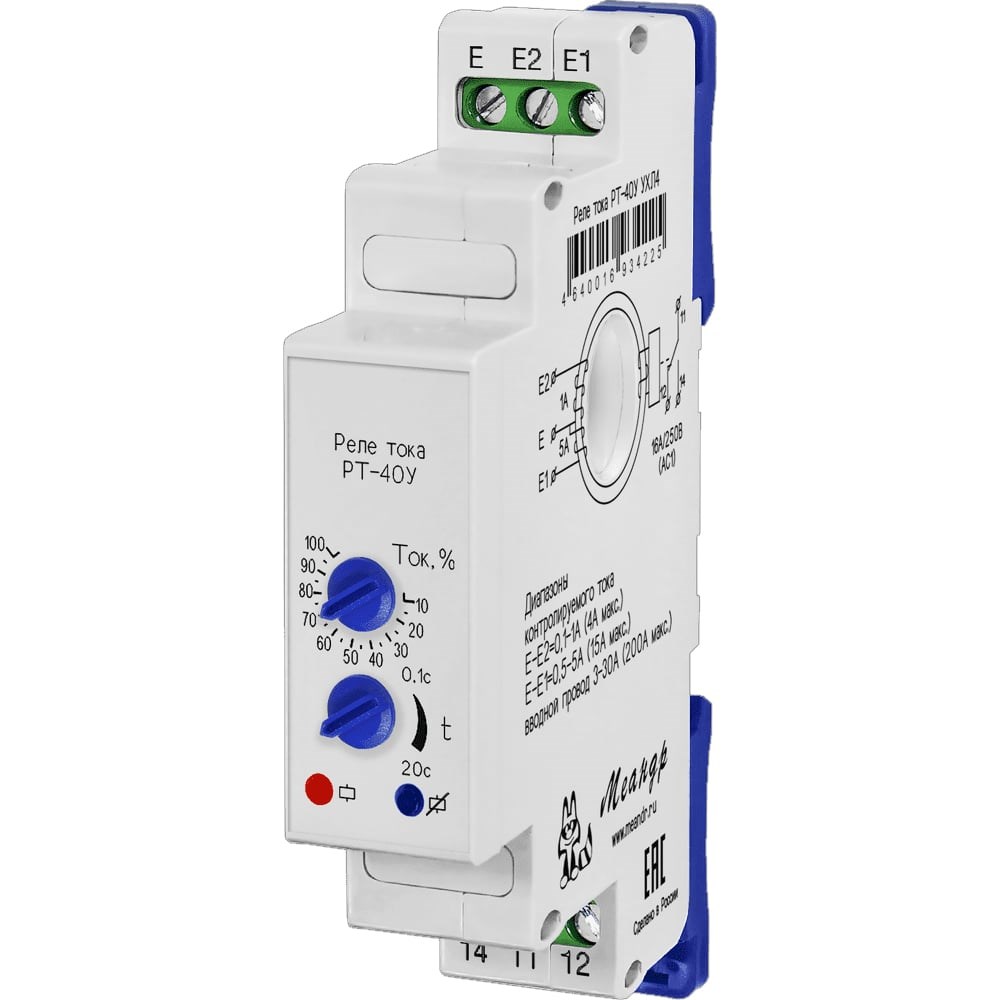 Реле тока РТ-40У (артикул A8302-16934225) предназначено для применения в схемах релейной защиты и автоматики энергетических систем в качестве устройства, реагирующего на превышение допустимого тока. Реле может использоваться для контроля перегрузки электродвигателей или другого электрооборудования, для контроля потребления, токовой защиты, диагностики состояния оборудования (замыкание, пониженное или повышенное потребление тока).Основные особенности:питание от контролируемого токатри диапазона измерения тока (0,1-1А, 0,5-5А и 3-30А)регулируемый порог срабатывания от 10 до 100% максимального значения токатермическая устойчивость в длительном режиме: диапазон — 1А до 4А; диапазон -5А до 15А, диапазон — 30А до 400Арегулируемая задержка срабатывания исполнительного реле от 0,2с до 20свстроенное исполнительное реле 16А 250Вкорпус шириной 1 модуль (17,5мм)
