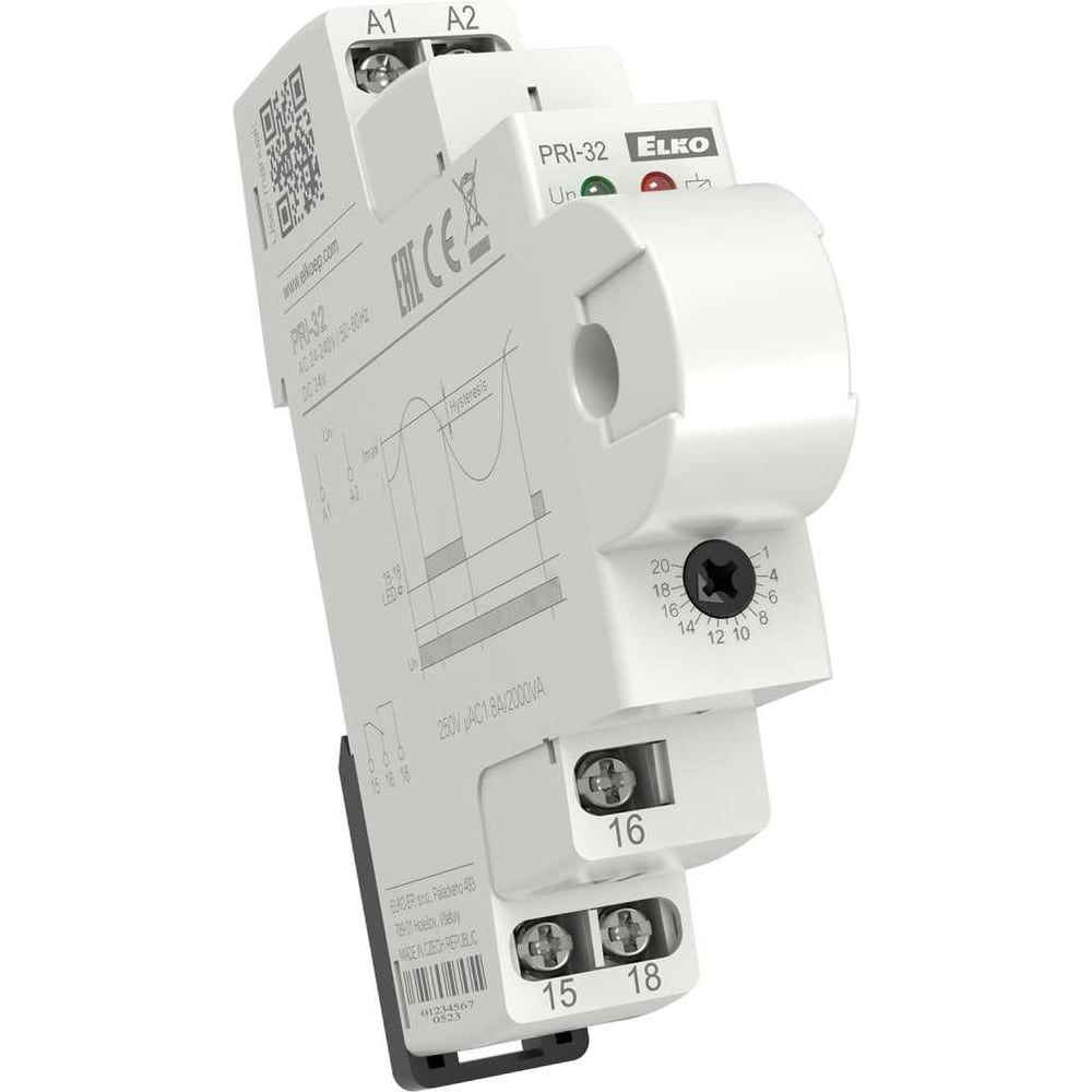 Дополнительные технические характеристики реле контроля тока с токовым трансформатором ELKO PRI-32 AC/DC 24-240V EP 00000000253: Интегрированный токовый трансформатор позволяет протянуть через переднюю панель изделия провод, в котором происходит желаемый замер тока. Эта конструкция снижает термозатраты изделия по сравнению с конвенционным решением изделий с встроенным шунтом, повышает токовый диапазон до 20 A и гальванически изолирует замеряемый участок. Служит, например, для наблюдения за нагревательным стержнем, кабелей систем отопления, индикации потребления тока, контроля потребления однофазовых двигателей. Плавная настройка подаваемого тока потенциометром 1 - 20 A/АС. Универсальное напряжение питания AC 24 - 240 V и DC 24 V. Питание гальванически изолировано от контура замера. Превышение тока - ток, проходящим по контрольному проводу не должен кратковременно превышать 100 А. Хомутные клеммы. Однофазное исполнение, 1 модуль, крепление на DIN рейку. Защита IP40 со стороны лицевой панели/IP20 клеммы.