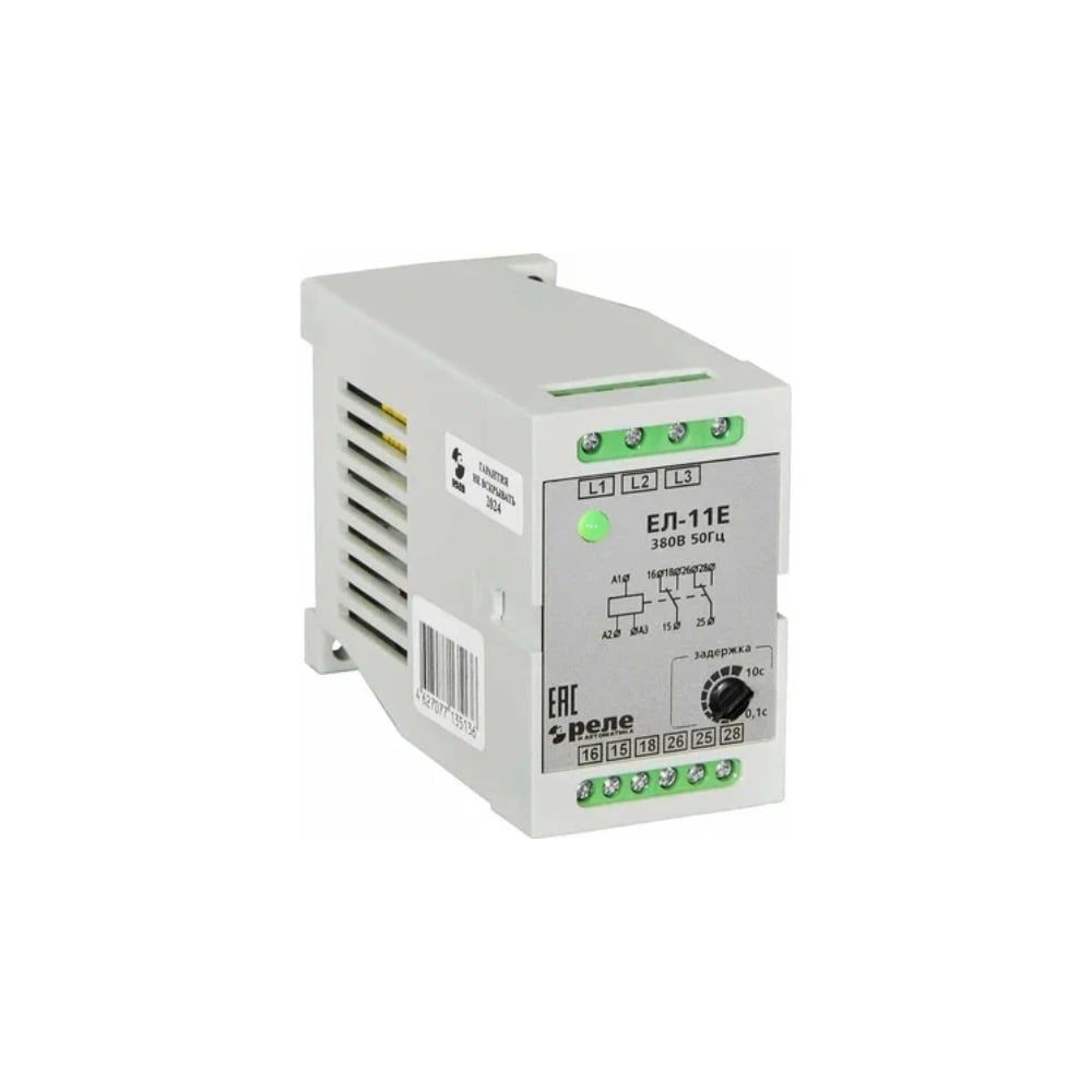 Реле контроля трехфазного напряжения Реле и Автоматика, ЕЛ-11Е 380В 50Гц A8222-77135136 используется в схемах автоматического управления источников и преобразователей электрической энергии. Реле ЕЛ-11Е контролируют: - однофазное снижение напряжения (0.6±0.05)Uфн; - симметричное снижение фазных напряжений (не менее 0.7 Uфн); - обрыв одной или двух фаз; - обратный порядок чередования фаз.
