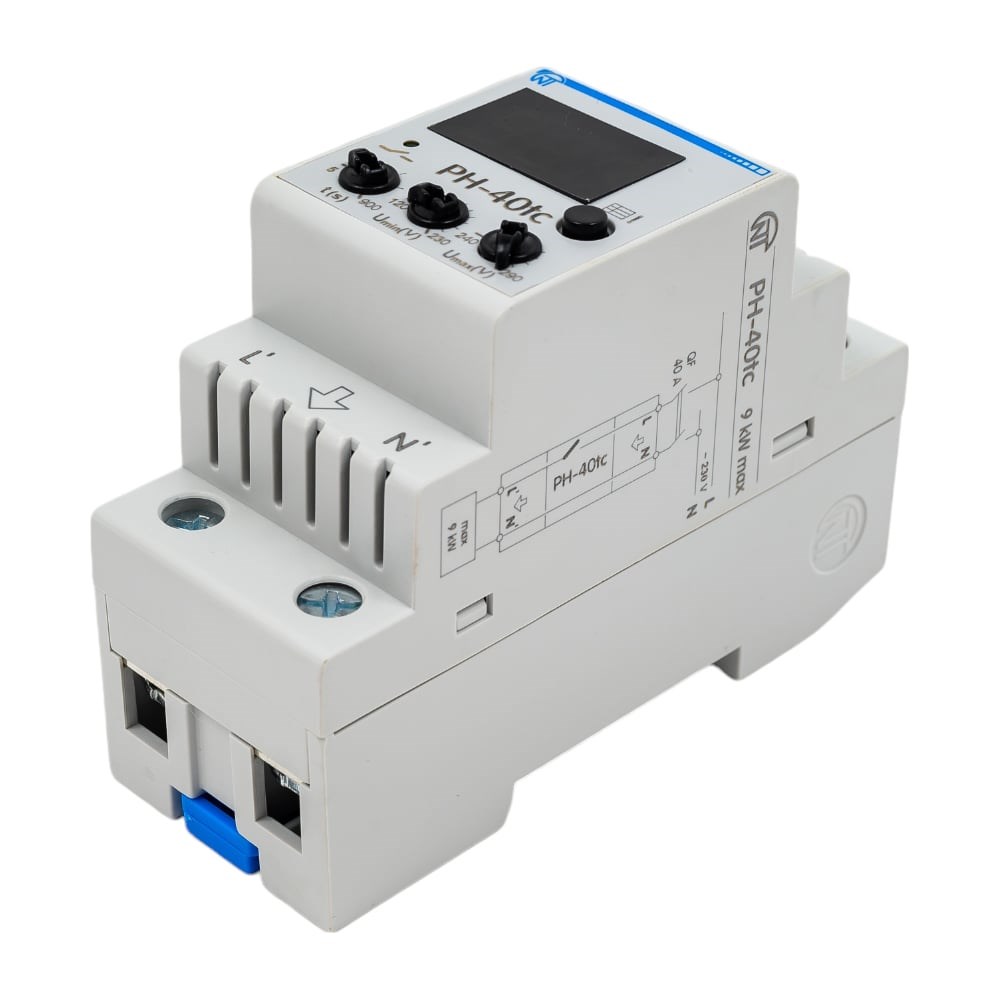 Реле напряжения НовАтек-Электро РН-40tс 3425600040tс предназначено для защиты бытового и промышленного электрооборудования (холодильников, кондиционеров, стиральных машин, теле-, видео- и аудиотехники и т.п.) от недопустимых колебаний напряжения в сети и последствий обрыва нейтрали (нуля). Реле напряжения: Индицирует действующее значение напряжения на входных контактах в диапазоне от 100 V до 350 V и индикацию наличия напряжения на выходных контактах. Сохраняет в энергонезависимой памяти информацию о пяти последних авариях. Реле напряжения имеет защиту от перегрева и отключит нагрузку, если температура внутри корпуса изделия превысит 85 °С (из-за превышения номинального тока нагрузки, плохого контакта вследствие слабого зажима винтов клеммника и т.д.). Питание изделия осуществляется от цепи, которая питает нагрузку.