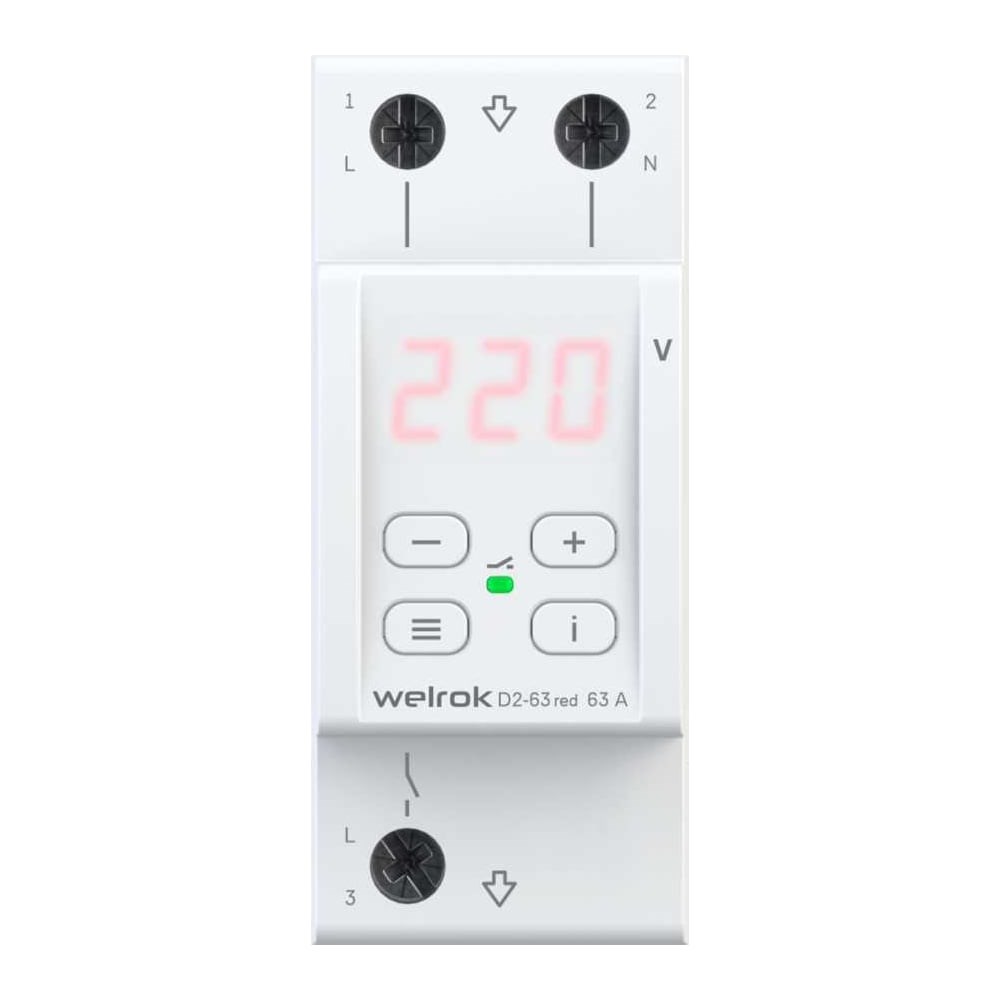 Реле напряжения Welrok d2-63 red 4660251140014 защищает оборудование от скачков и провалов напряжения, обрыва нулевого провода. Реле отключает нагрузку, если сетевое напряжение выходит за установленные пределы. Когда значение напряжения вернется в норму, нагрузка будет автоматически включена обратно. Подключение можно сделать с транзитом или без транзита нуля через Welrok D2. Welrok D2 - компактное реле на 2 модуля с мощным функционалом: Скорость срабатывания реле < 0,03 сек. TrueRMS для точного измерения напряжения. Для уменьшения количества срабатываний: Защита от частых срабатываний. Регулируемый гистерезис. Регулируемая задержка включения нагрузки. Профессиональная модель отключения при выходе напряжения за пределы. Для анализа питающей сети по характеру аварийных срабатываний: Журнал срабатываний на 100 значений. Для комфортной и безопасной эксплуатации: Поправка напряжения на экране. Регулировка яркости экрана. Защита от перегрева. Корпус реле напряжения изготовлен из пластика, не поддерживающего горение.