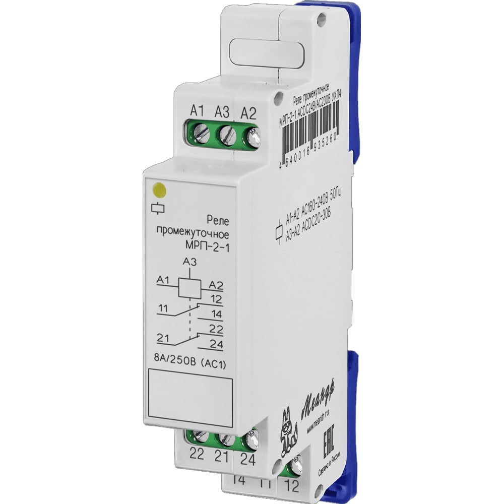 Реле промежуточное МРП-2-1(артикул A8302-16935260) предназначено для гальванической развязки между силовыми цепями и цепями управления дистанционного включения нагрузки путём подачи управляющего напряжения на вход реле, а также для использования в качестве промежуточного реле.Основные особенности:Индикация состояния выходаВстроенная защита коммутирующего элемента от индуктивных выбросов, возникающих при размыкании реле2 переключающих контакта (7А)