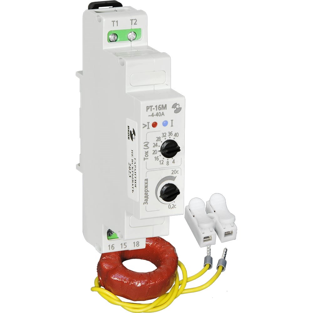 Реле тока с выносным датчиком РТ-16М предназначено для контроля тока в электрических цепях. Срабатывание реле происходит с регулируемой временной задержкой (0.2 — 20с) при величине тока выше установленного значения.Особенности:Питание осуществляется от провода с контролируемым током, который пропускается через выносной трансформаторКонтакты: 1 переключающий (16А)Диапазон контролируемого тока: 4 -40 А